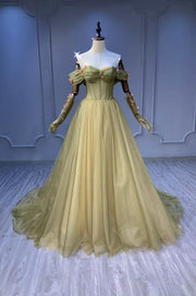 Wholesale Green Tulle Long Prom Dress Off the Shoulder Evening Graduation Dress