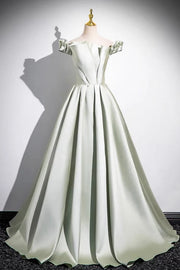 Wholesale Light Green A-Line Satin Long Prom Dress Simple Green Strapless Evening Dress