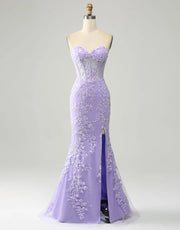 Wholesale Lilac Mermaid Sweetheart Lace Up Long Prom Dress With Appliques prom dresses shops - US 2 / UK 6 / EU 32
