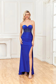 Wholesale Mermaid/Bodycon Strapless/Sweetheart Satin Beaded Lace Appliques Prom Dresses with Slit - US 2 / UK 6 / EU 32