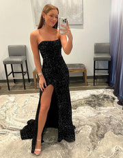 Wholesale Mermaid Glitter Black Sleeveless Long Prom Dress With Sequins prom dresses with long sleeves
