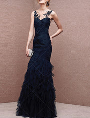 Wholesale Mermaid / Trumpet Evening Gown Open Back Dress Formal Wedding Guest Floor Length Sleeveless Strapless Tulle with Ruched Appliques - US 2 / UK 6 / EU 32