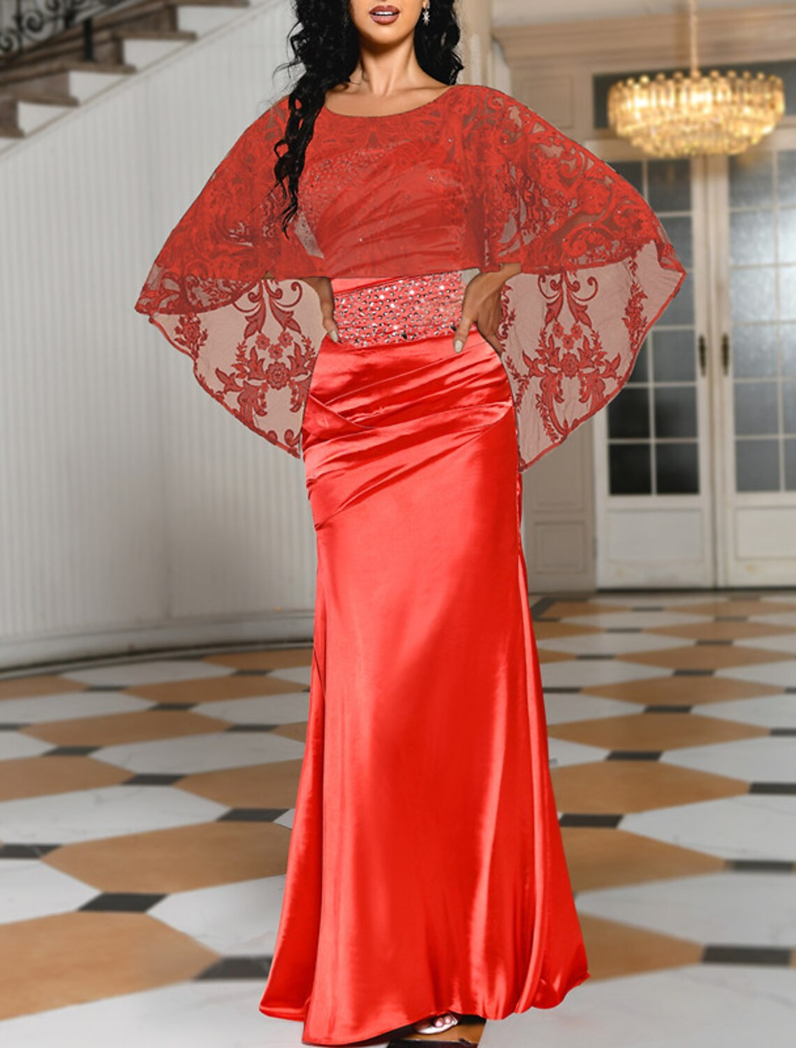Wholesale Mermaid / Trumpet Evening Gown Sparkle & Shine Dress Formal Wedding Guest Floor Length Sleeveless Jewel Neck Charmeuse with Ruched Sequin