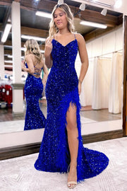 Wholesale Mermaid V-Neck Corset Back Glitter Prom Dress With Split