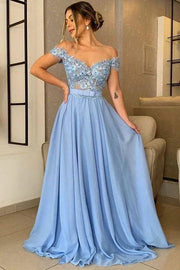 Wholesale Off the Shoulder A Line Chiffon Appliques Prom Dress
