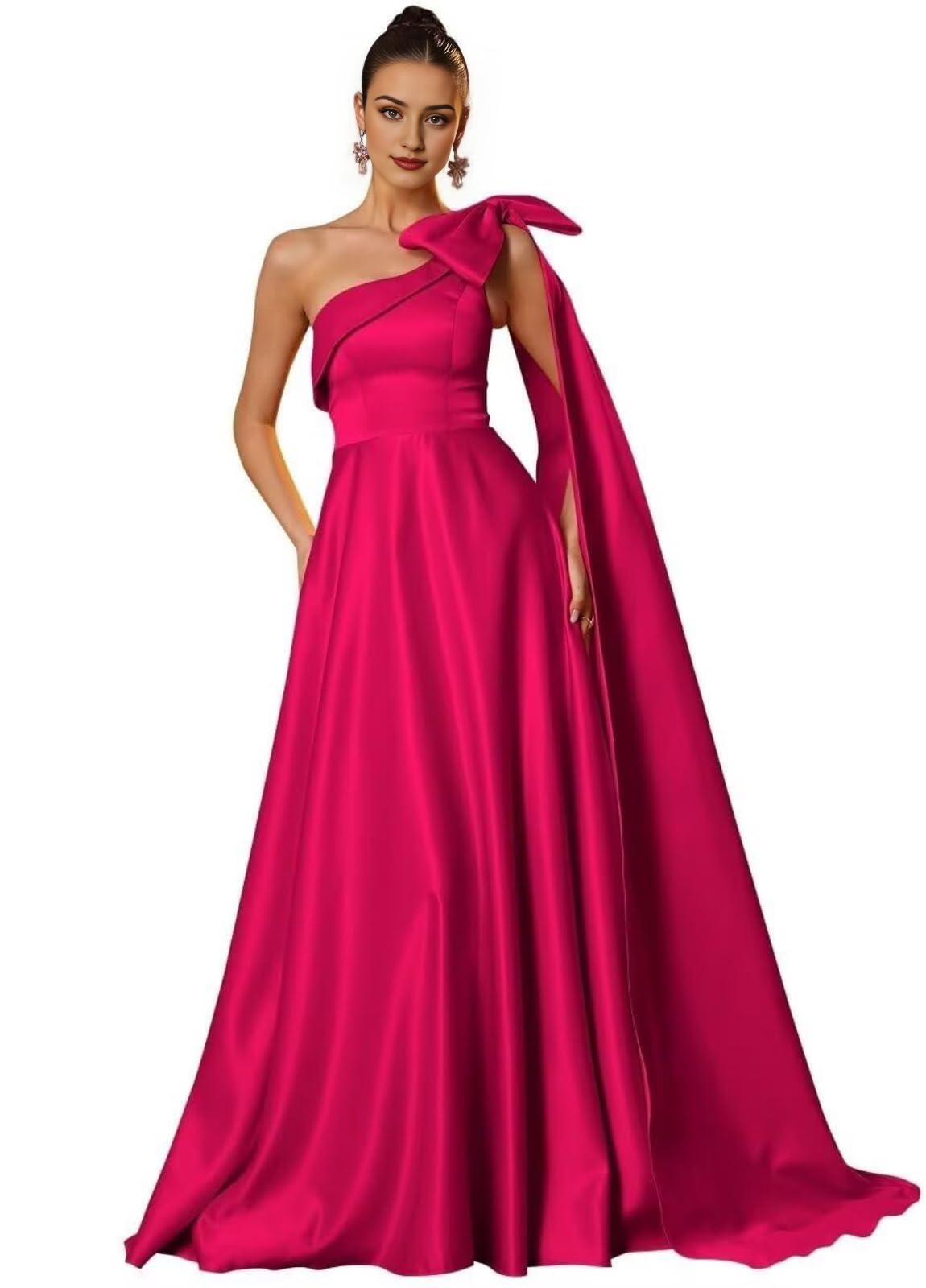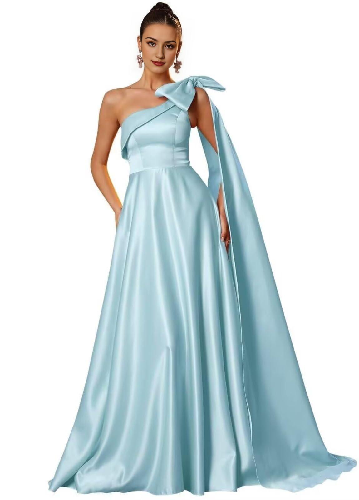 Wholesale One Shoulder Satin Prom Dresses with Bow Satin Bridesmiad Dress Split Long Formal Evening Gown