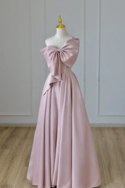 Wholesale Pink Satin Long Prom Dress with Bow One Shoulder Formal Evening Dress