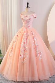 Wholesale Pink Tulle Lace and Flowers Ball Gown Formal Dresses Pink Long Sweet 16 Dresses