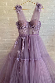 Wholesale Purple Lace Long Prom Dress A-Line Purple Evening Graduation Dress - US 2 / UK 6 / EU 32