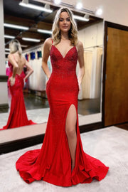 Wholesale Red Glitter Mermaid Open Back Long Corset Beaded Prom Dress prom dresses with long sleeves - US 2 / UK 6 / EU 32