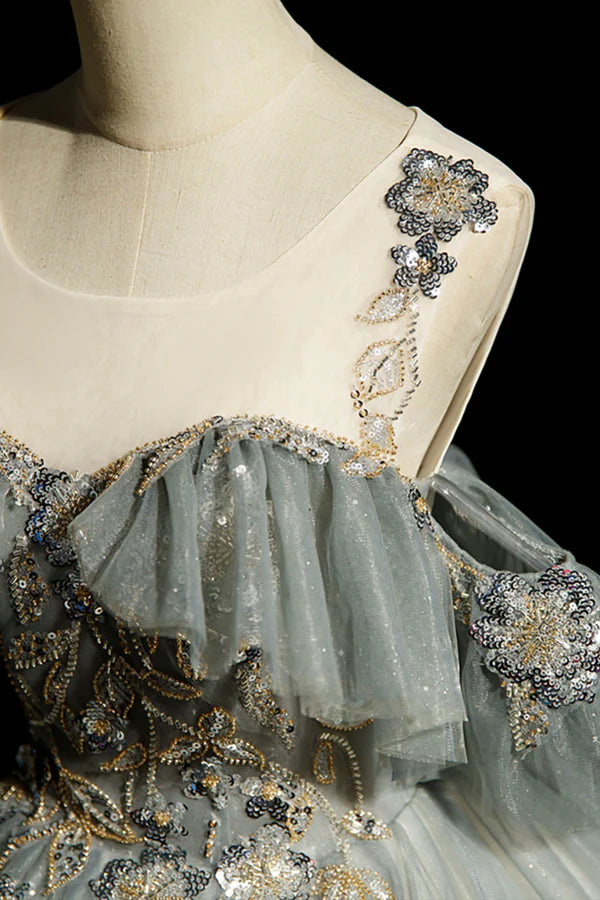 Wholesale Scoop Neckline Tulle Long Formal Dress with Beaded A-Line Evening Dress - US 2 / UK 6 / EU 32