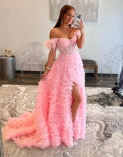 Wholesale Sexy A-line Tiered Off-the-Shoulder Prom Dress Evening Dress prom dresses with long sleeves