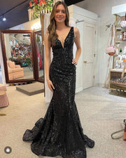 Wholesale Sexy Black Mermaid Deep V-Neck Prom Dress With Sequin prom dresses shops