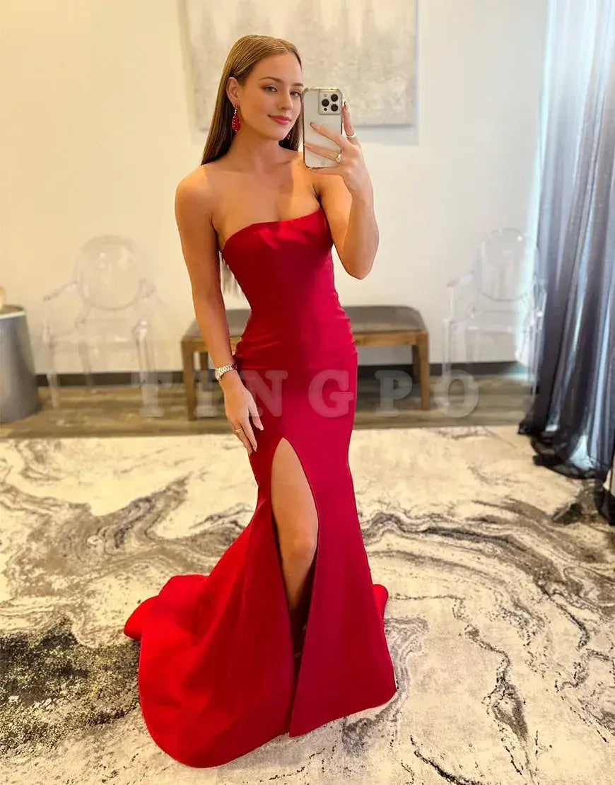 Wholesale Sexy Burgundy Strapless Long Prom Dress With Split prom dress in store