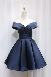 Wholesale Simple Satin Short Prom Dress Off Shoulder Blue Party Dress - US 2 / UK 6 / EU 32