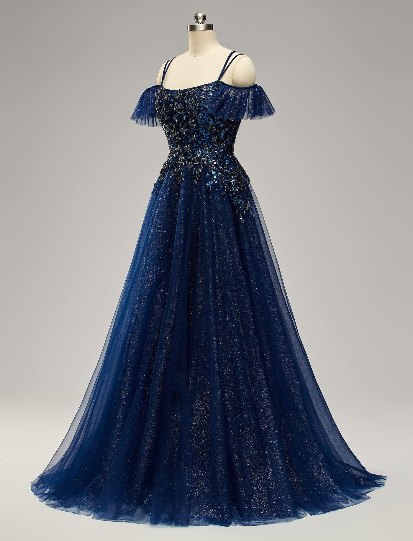 Wholesale Sparkle A Line Off Shoulder Tulle Appliques Beaded Ruffles Prom Dresses - US 2 / UK 6 / EU 32