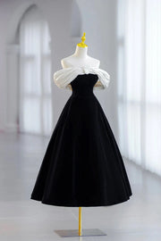 Wholesale White and Black Velvet Short Prom Dress Black Off Shoulder Evening Dress