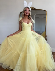 Wholesale Yellow A-Line Tie Straps Zipper Back Long Tulle Prom Dress prom dresses shops - US 2 / UK 6 / EU 32
