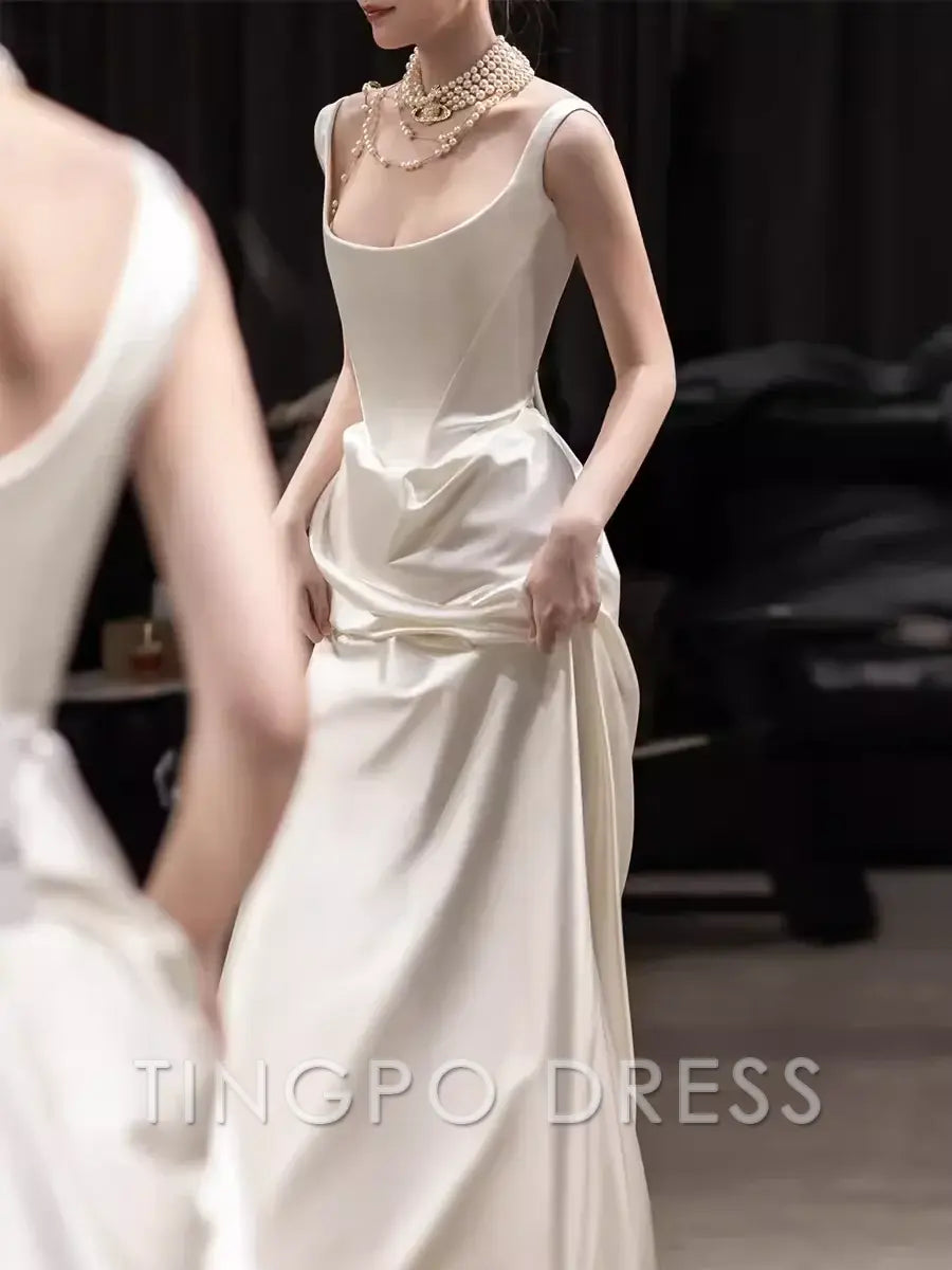 TingPo Wholesale Simple Sheath Long White Prom Dresses formal wear dressesRegular price $129.99