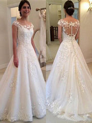 Wholesale A-Line/Princess Scoop Sleeveless Sweep/Brush Train Lace Tulle Wedding Dresses