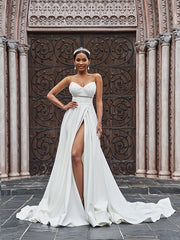 Wholesale A-Line/Princess Stretch Crepe Ruffles Sleeveless Sweetheart Court Train Wedding Dresses - US 2 / UK 6 / EU 32