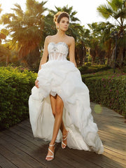 Wholesale A-Line/Princess Sweetheart Beading Sleeveless High Low Organza Wedding Dresses - US 2 / UK 6 / EU 32