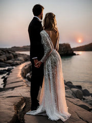 Wholesale A-Line/Princess V-Neck Long Sleeves Sequins Wedding Dress