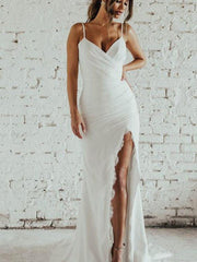 Wholesale Sheath/Column Spaghetti Straps Ruched Sleeveless Sweep/Brush Train Wedding Dresses - US 2 / UK 6 / EU 32