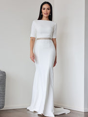 Wholesale Sheath/Column Stretch Crepe Ruched Scoop 1/2 Sleeves Sweep/Brush Train Wedding Dresses - US 2 / UK 6 / EU 32