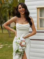 Wholesale Sheath/Column Stretch Crepe Ruched Spaghetti Straps Sleeveless Sweep/Brush Train Wedding Dresses - US 2 / UK 6 / EU 32