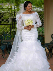 Wholesale Trumpet/Mermaid Square Applique Organza Long Sleeves Chapel Train Wedding Dresses