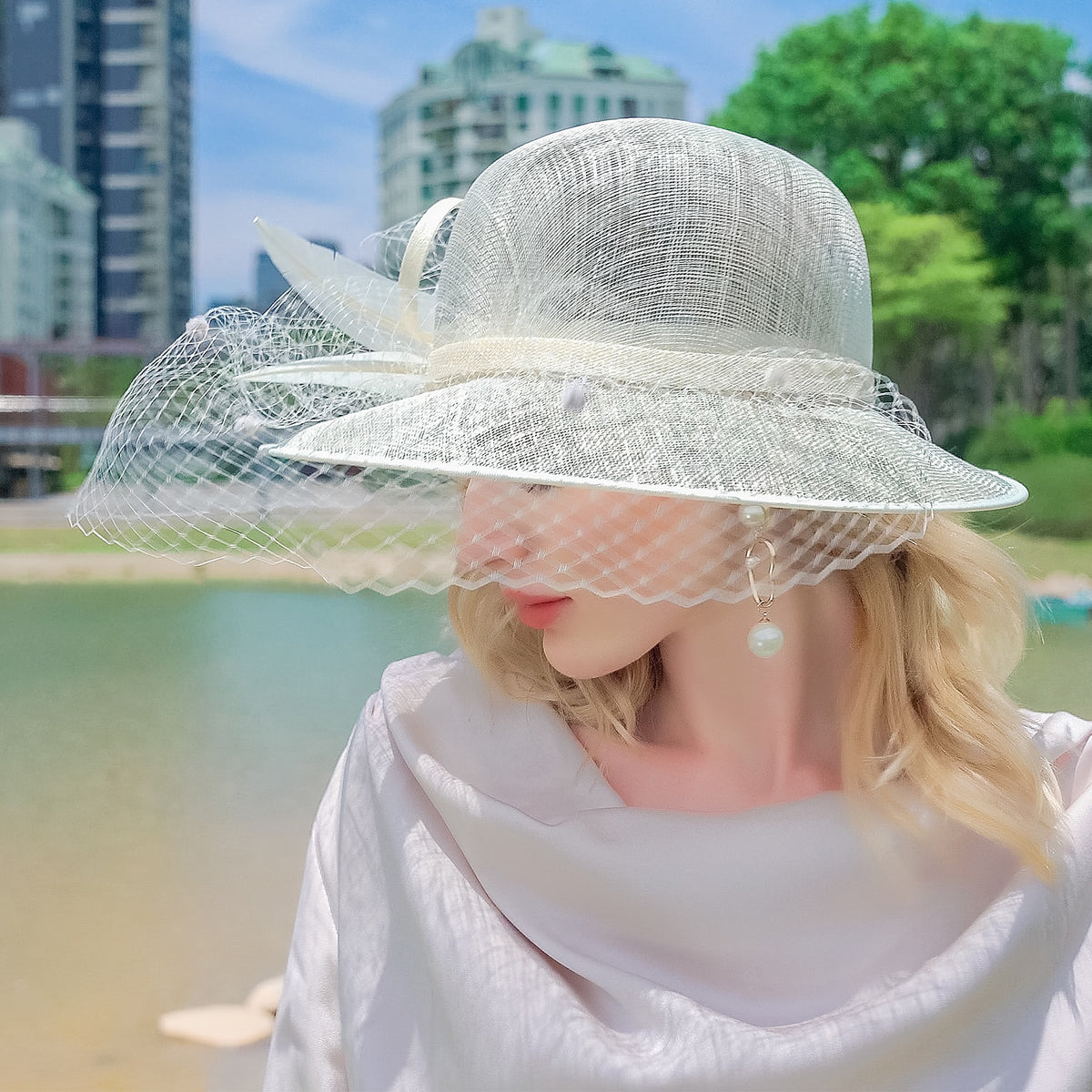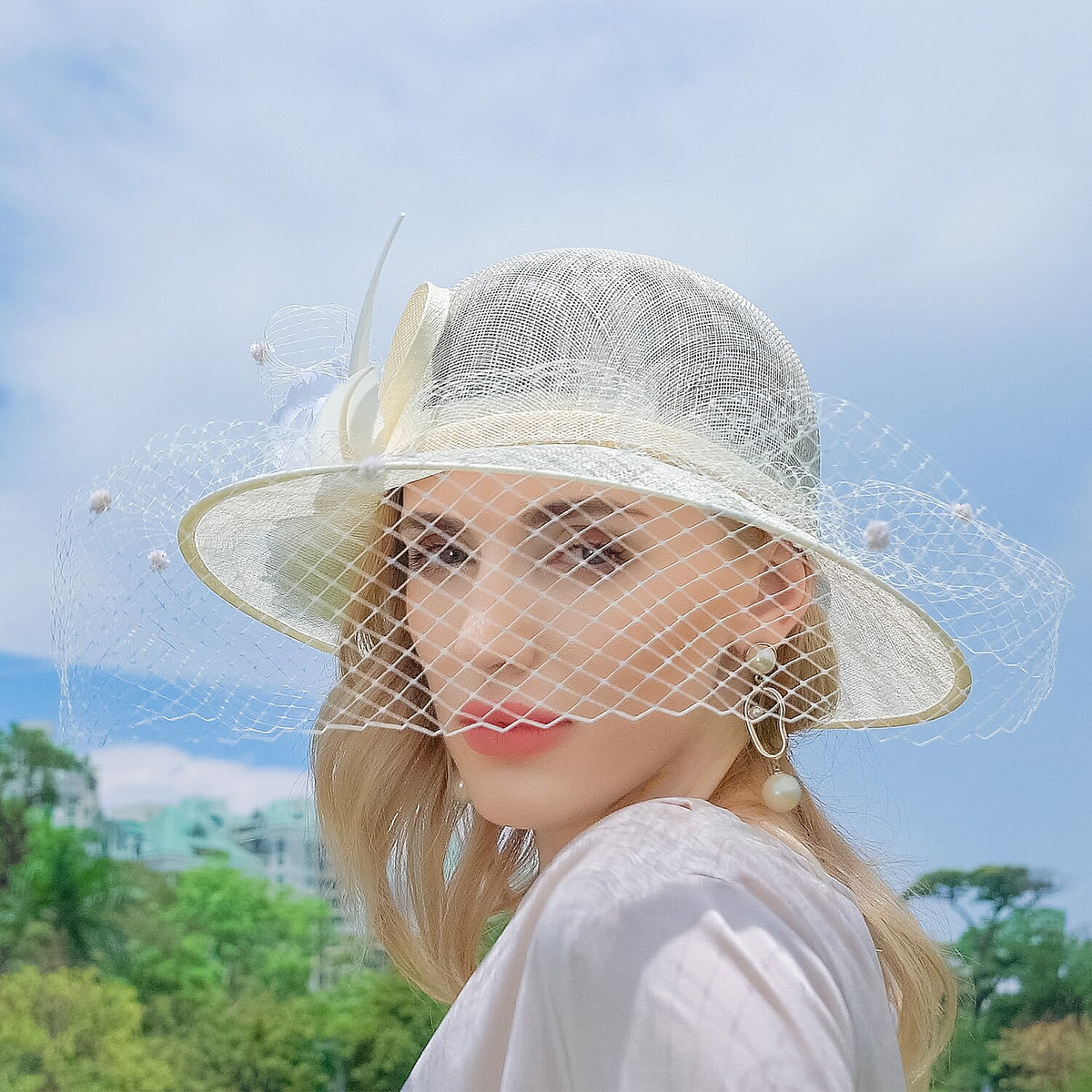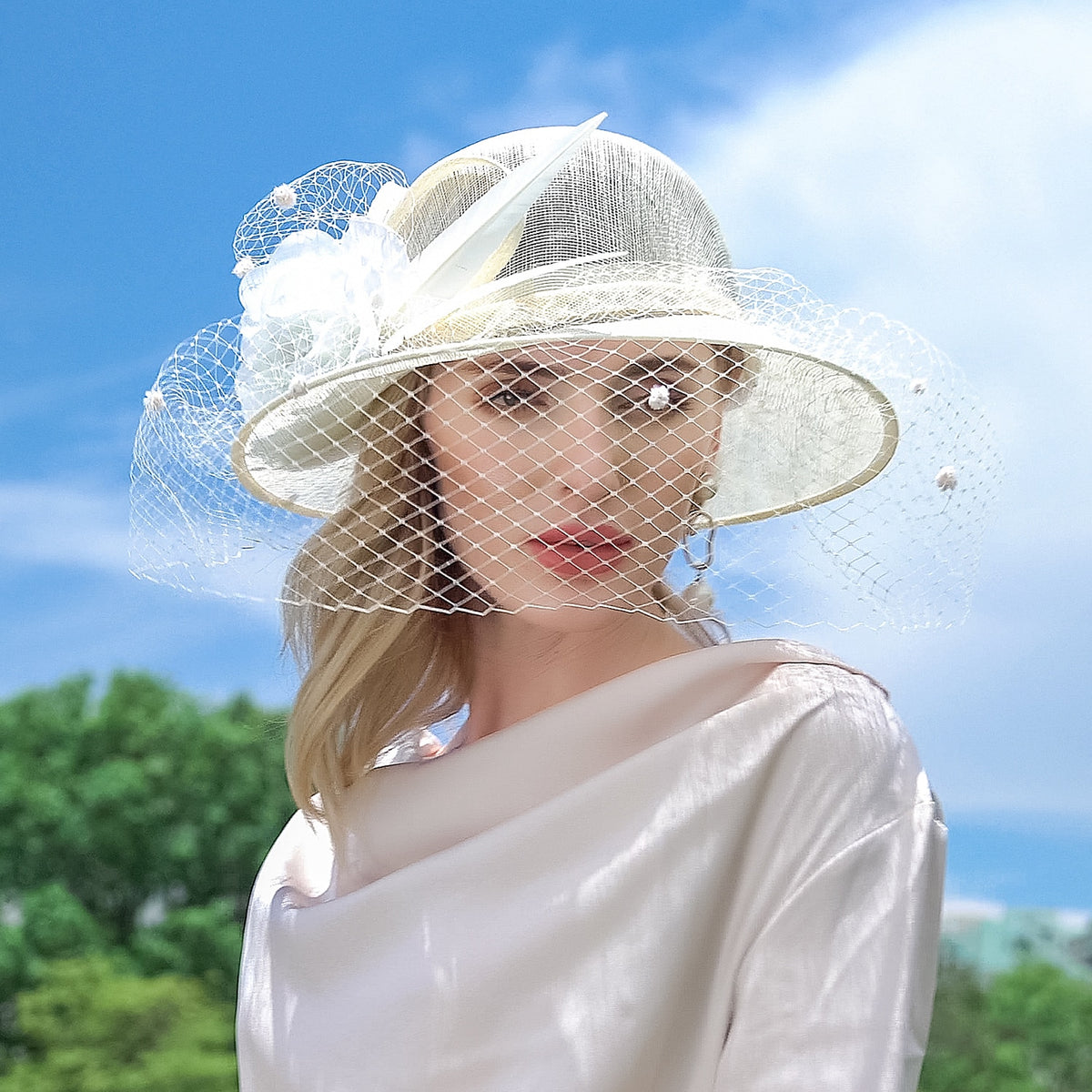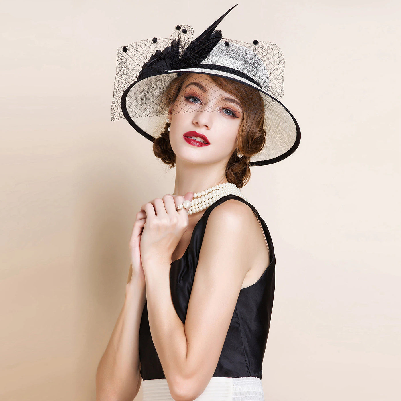 Wholesale Artistic / Retro Elegant Sinamay / Abaca Fascinators / Hats with Feather / Flower / Tulle 1PC Fall Wedding / Party / Evening / Melbourne Cup Headpiece - Beige / Black / M