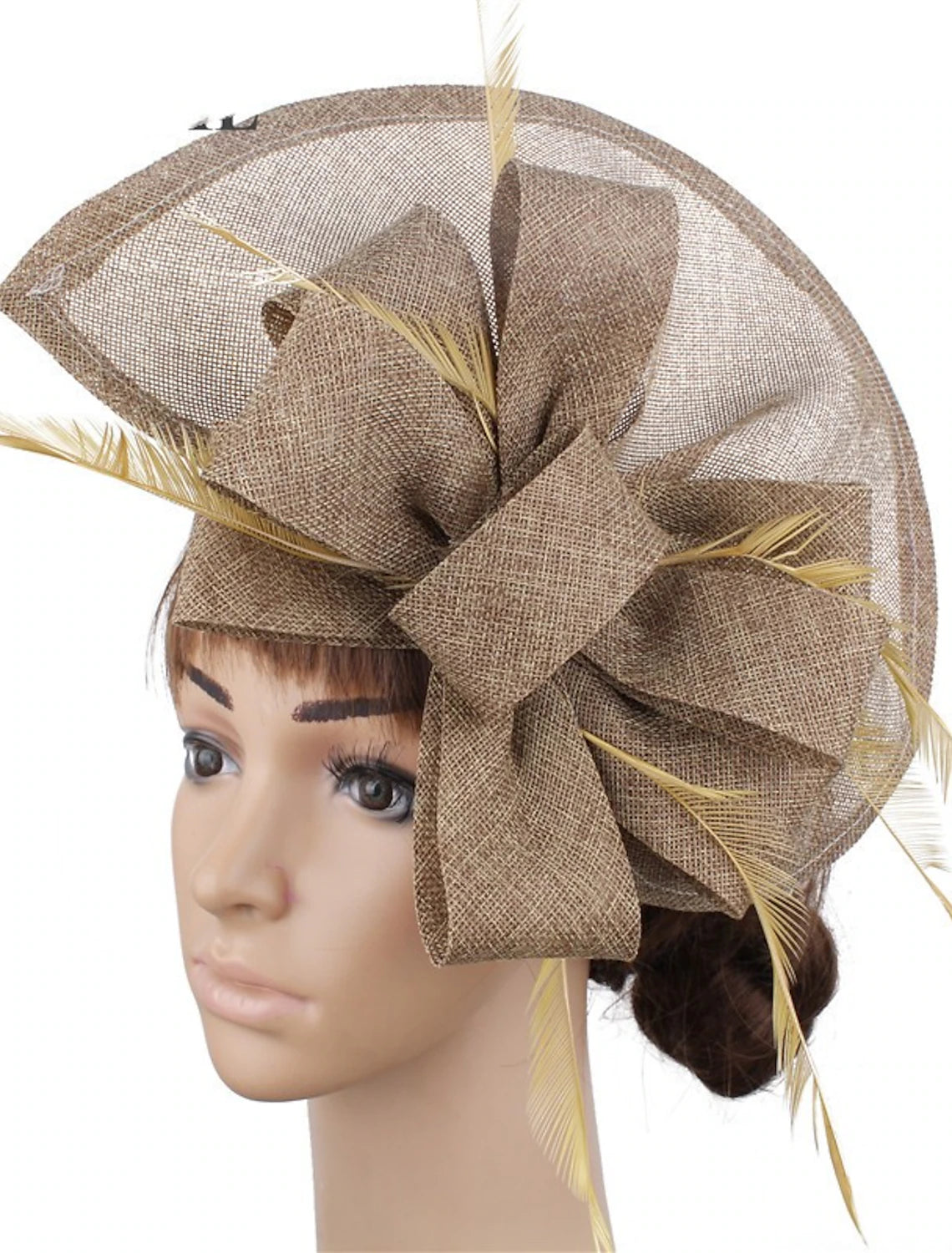 Wholesale Fascinators Faux Linen Kentucky Derby Horse Race Cocktail Royal Astcot Retro Elegant With Feather Bowknot Headpiece Headwear