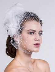 Wholesale Fascinators Kentucky Derby Hat Feather / Fabric / Net Headwear / Birdcage Veils with Floral 1PC Wedding / Casual Headpiece - White