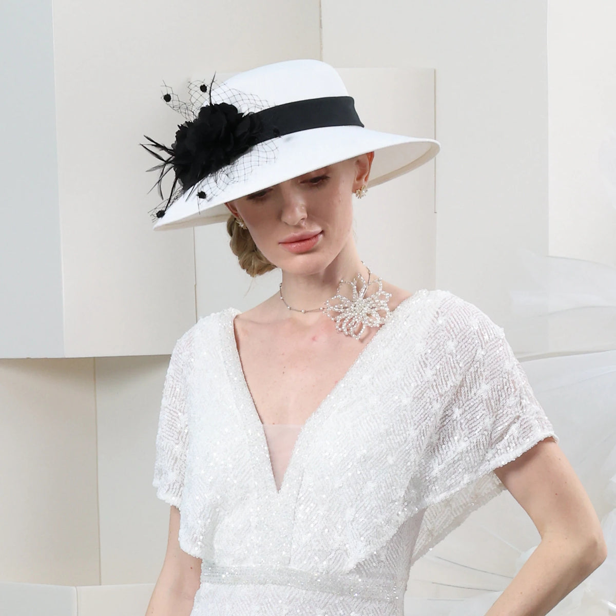 Wholesale Fascinators Kentucky Derby Hat Fiber Bowler / Cloche Hat Straw Hat Sun Hat Wedding Evening Party Elegant Sun Protection With Feather Floral Headpiece Headwear - White / M