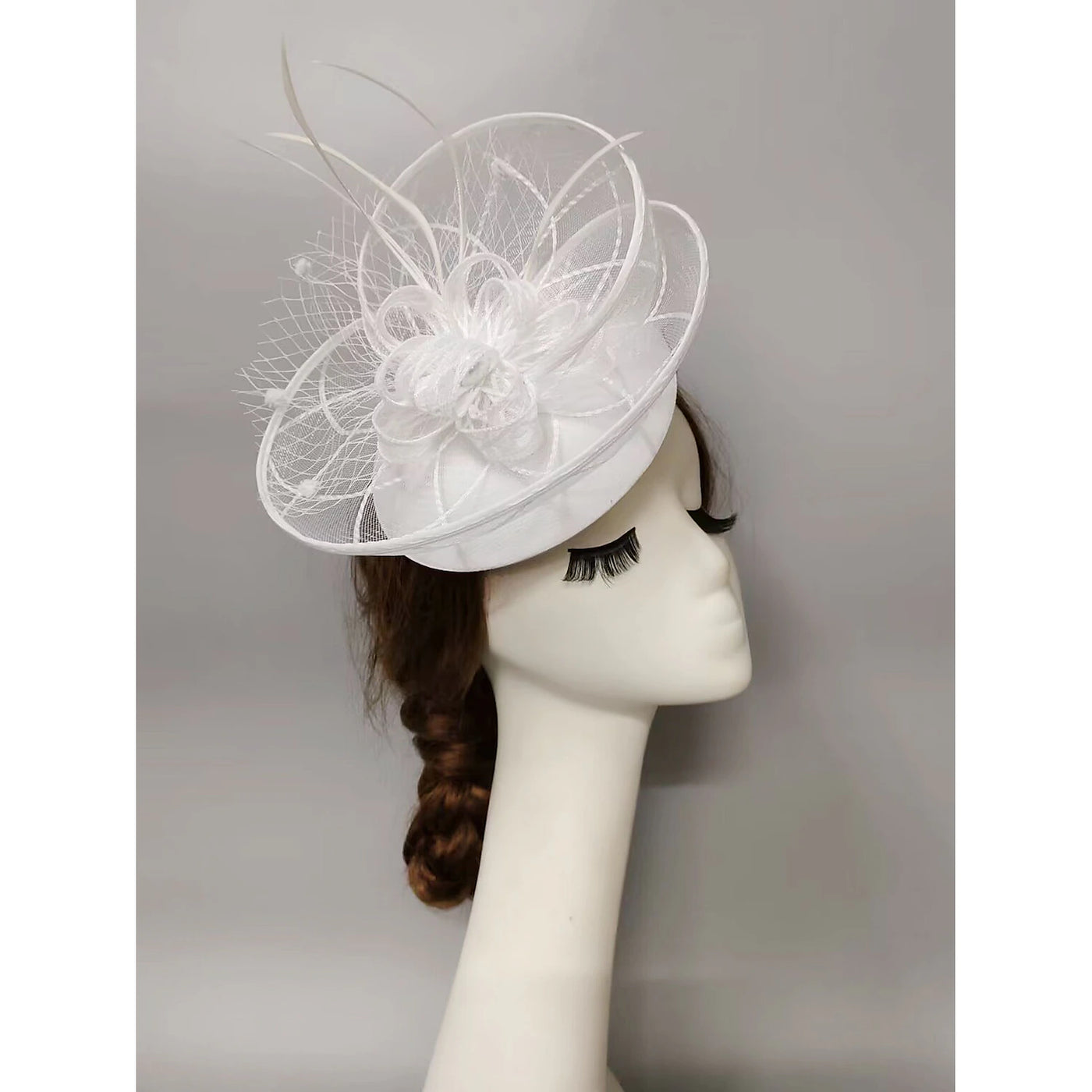 Wholesale Fascinators Kentucky Derby Hat Headwear Headpiece Pearl Feathers Veil Hat Wedding Ladies Day Cocktail Royal Astcot With Feather Pearl Headpiece Headwear