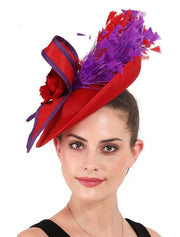 Wholesale Fascinators Sinamay Wedding Kentucky Derby Cocktail Retro Bridal With Feather Floral Headpiece Headwear - Red