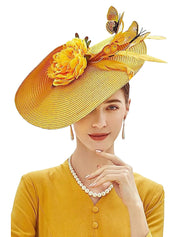 Wholesale Fascinators synthetic fibre Halloween Kentucky Derby Glam Fancy With Flower Butterfly Headpiece Headwear - Yellow