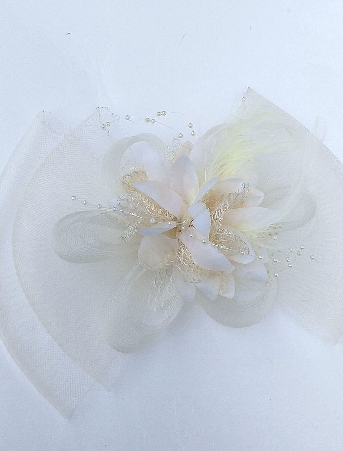 Wholesale Feather / Net Fascinators / Flowers / Hats with Floral 1PC Wedding / Special Occasion / Horse Race Headpiece - Beige