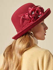 Wholesale Hats Artificial feather Poly / Cotton Blend Bowler / Cloche Hat Bucket Hat Fedora Hat Kentucky Derby Cocktail Royal Astcot Fall Wedding Elegant With Feather Appliques Headpiece - Burgundy