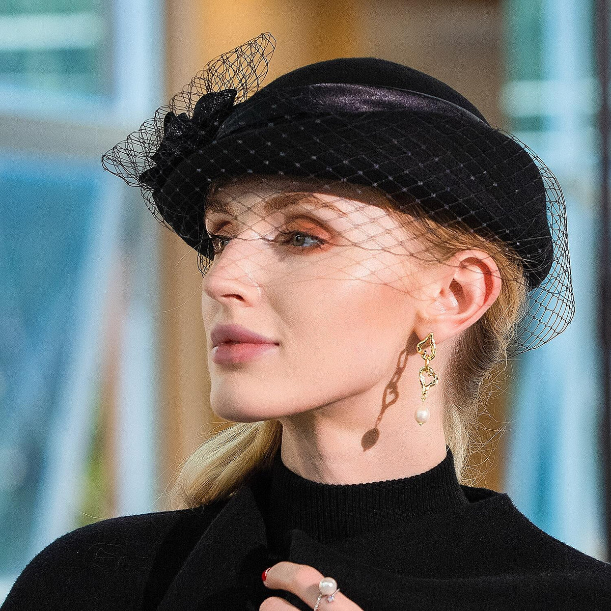 Wholesale Hats Headwear 100% Wool Beret Hat Bowler / Cloche Hat Wedding Cocktail Elegant Wedding With Floral Lace Side Headpiece Headwear - Black / M