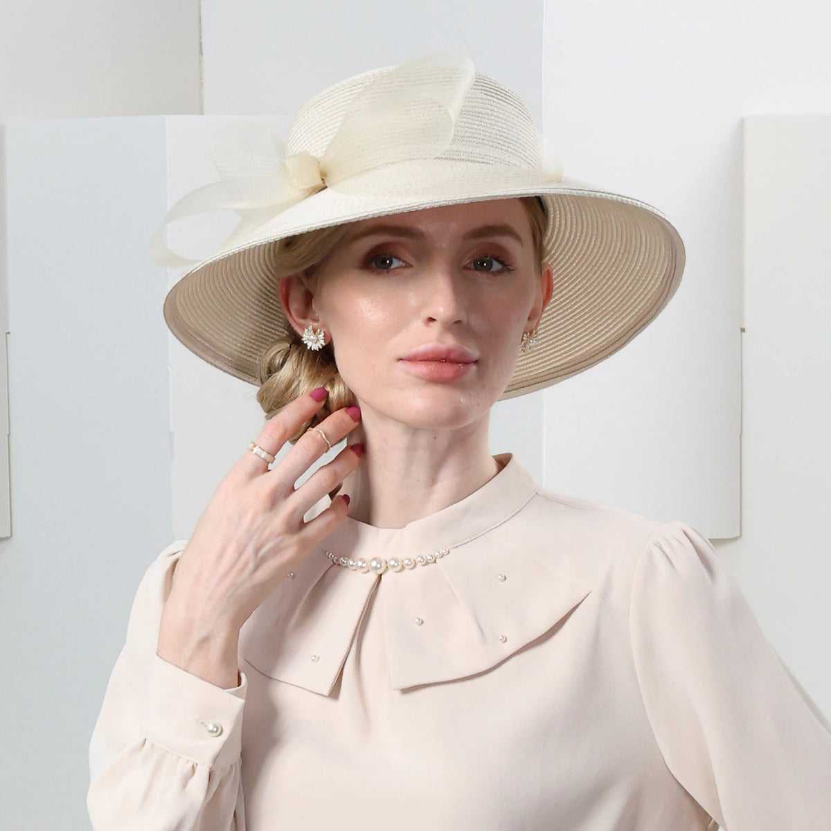 Wholesale Hats Net Fiber Straw Hat Sun Hat Cloche Hat Casual Tea Party Elegant Wedding With Bowknot Lace Side Headpiece Headwear - Champagne