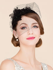 Wholesale Headwear Net Veil Hat Wedding Casual Tea Party Valentine's Day Horse Race Retro Romantic Classic With Tulle Face Veil Headpiece Headwear - Black