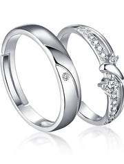 Wholesale Men Women Couple Rings Wedding Classic Silver S925 Sterling Silver Precious Stylish Simple 1 Pair Zircon - Silver / Adjustable