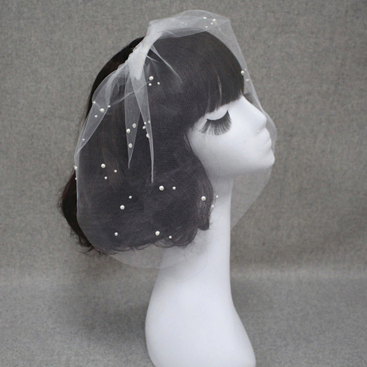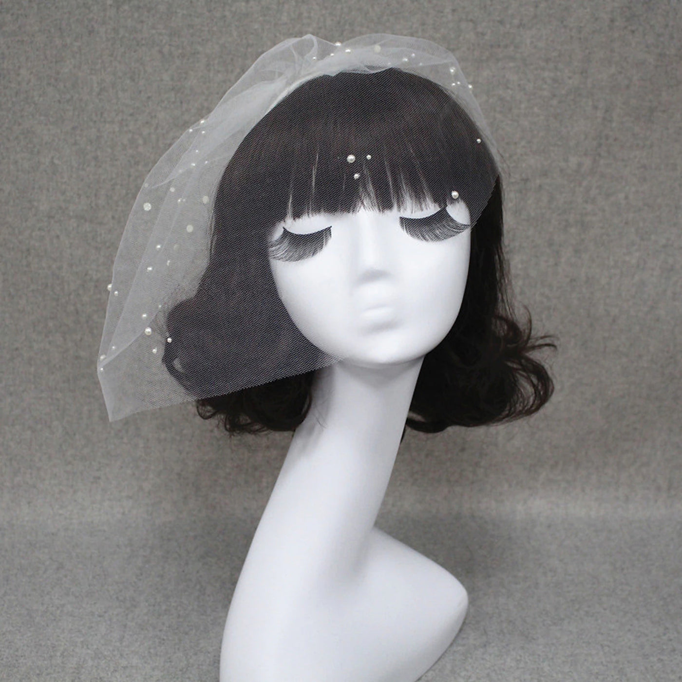 Wholesale One-tier Cut Edge Wedding Veil Blusher Veils / Veils for Short Hair / Birdcage Veils with Pearl Tulle
