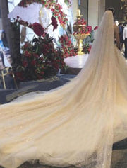 Wholesale One-tier Luxury Wedding Veil Cathedral Veils with Solid Tulle - Champagne