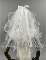 Wholesale Two-tier Classic / Sweet Wedding Veil Elbow Veils with Satin Bow 23.62 in (60cm) Lace - Ivory