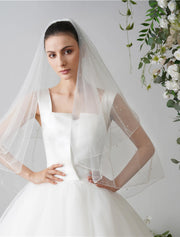 Wholesale Two-tier Pearls Wedding Veil Fingertip Veils with Faux Pearl 84.65 in (215cm) Tulle