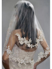 Wholesale Two-tier Stylish / Pearls Wedding Veil Elbow Veils with Faux Pearl / Embroidery POLY / Drop Veil - Ivory