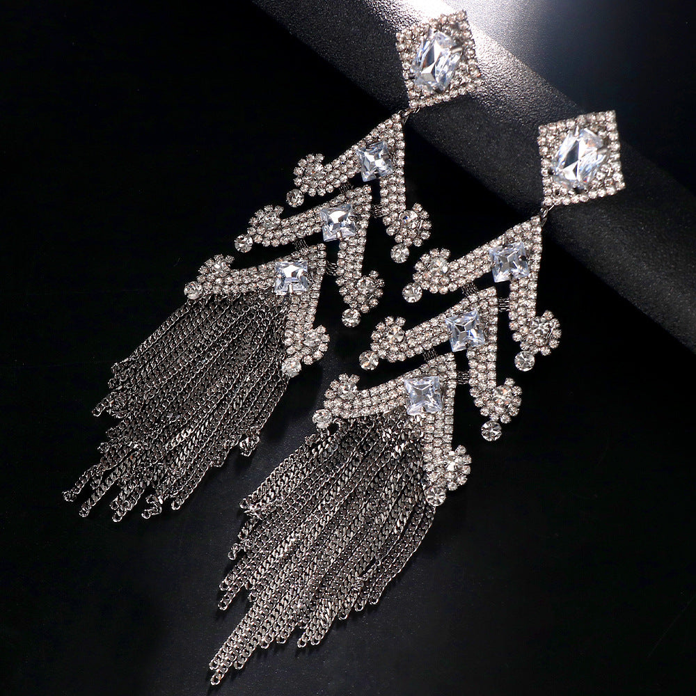 Wholesale Women's Hoop Earrings Fine Jewelry Geometrical Vertical / Gold bar Precious Statement Imitation Diamond Earrings Jewelry Silver For Party Street Club 1 Pair - Silver